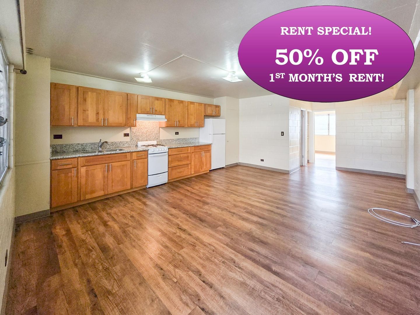 RENT SPECIAL 50% OFF 1ST MONTH'S RENT! 1BR / 1Bath Apartment Rental in Liliha